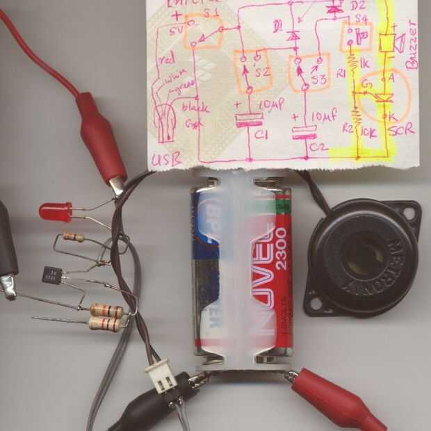 Si comprueba hacia fuera está bien, está trabajando su scr. Si usted no puede conseguir un scr o, si está satisfecho con un momentáneo 'pip' puedes sustituir un transistor ordinario para el SCR.