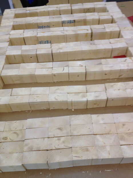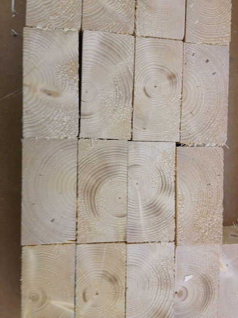 Utilizando el inglete vio, cortar unos 12, 8' 2x4s.  Esto me dio aproximadamente 4 millones 2.5" piezas.