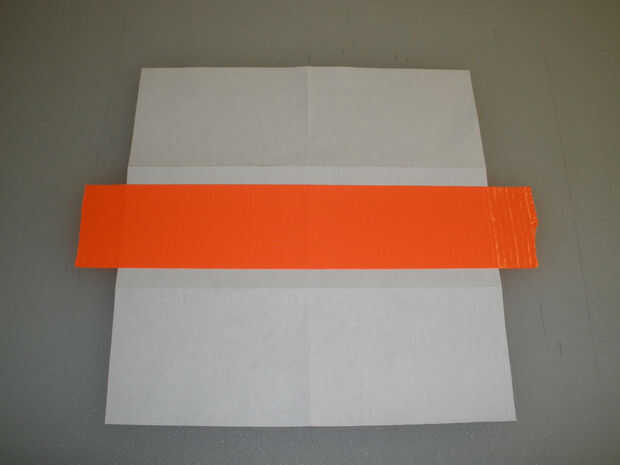 3. con la regla en su lugar pegar un pedazo de cinta sobre el papel con la superposición en la cima de la primera cinta.