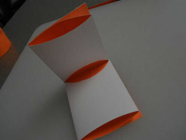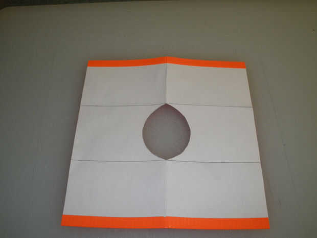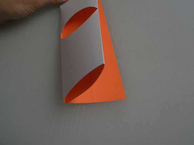 6. doble el papel por la mitad a la línea media y cortar el arco con unas tijeras.