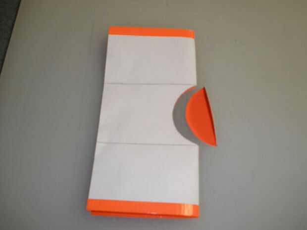 5. Voltee el papel y recorte el exec en los lados. Pliegue el colgar sobre el papel.