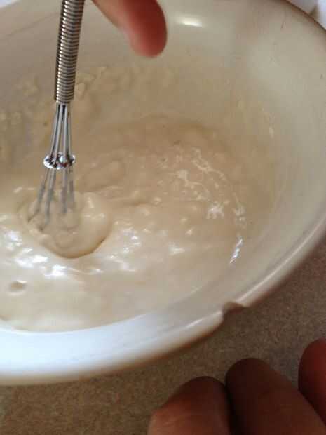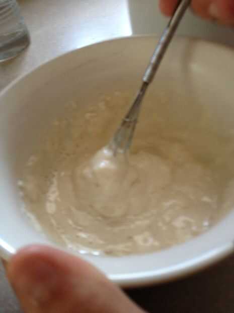 Vierta agua en el recipiente y mezclar con la harina debe espesarse. Luego agregue la mantequilla en el vaso más de agua y harina.