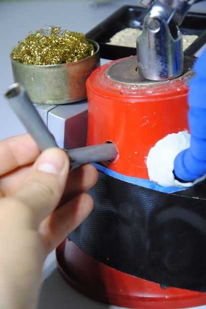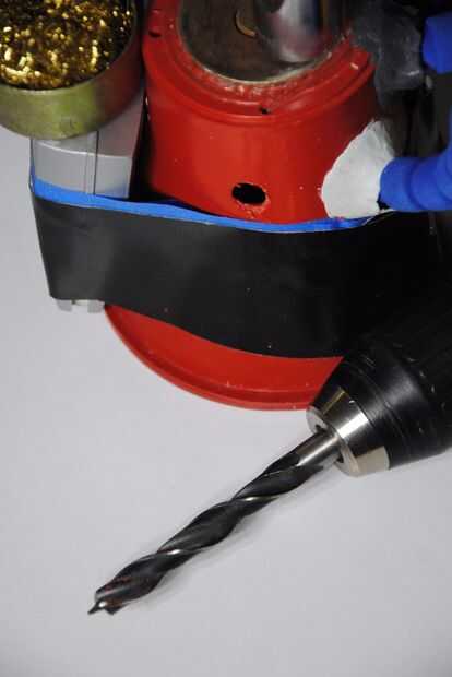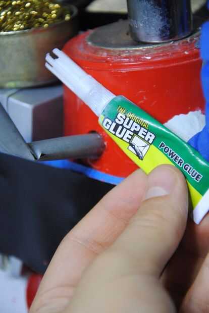 Después de eso, perforó un agujero (con una 10mm broca, otra vez...), pega la varilla en su lugar con Super- pegamento e inserta el carrete/bobina de soldadura en el lugar. Te recomiendo lamiendo "Mostrar más" para ver todas las fotos