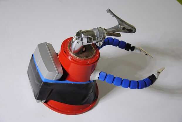 Toda la estructura de esta herramienta es construida para ser muy fuerte y ser capaz de sostener mucho peso. Pero con el peso de la lupa (siguiente paso), y un gran PCB, puede caer.