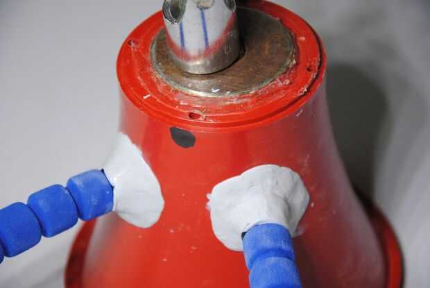 Marqué el lugar que quería la lupa que, perforó un agujero (de nuevo con una broca de 10mm) y cubren el brazo con masilla epoxi, al igual en el paso #4.