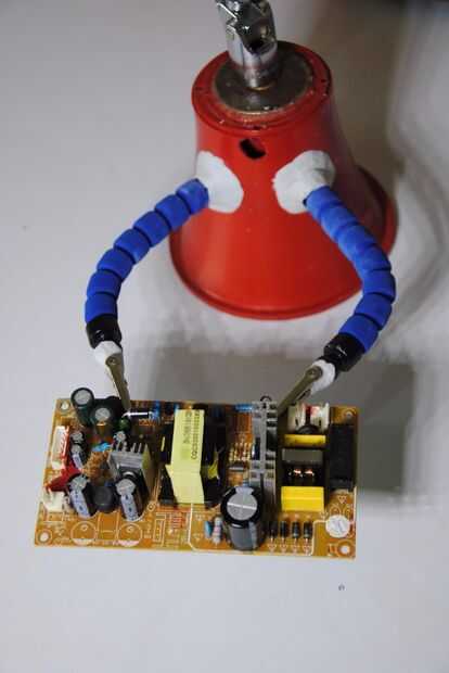 Después de eso, había conectado la lupa hasta el final de la pierna de Gorillapod con masilla epoxi. Hay probablemente mejores formas de hacer esto, pero es la forma más fácil para mí. También, porque el epoxi todavía no se había curado completamente, usé una amarra para sujetar el brazo en posición