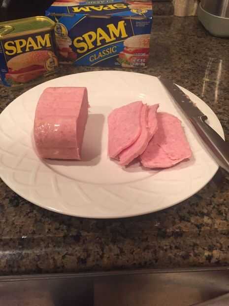 4. Corte el spam a rodajas de 1/4 de pulgada de grosor.