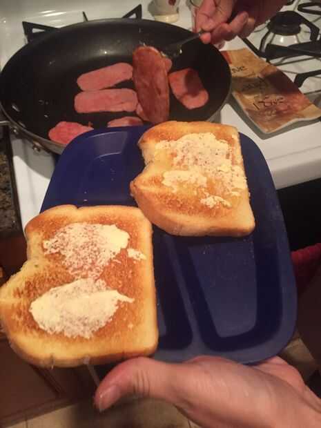 El brindis debe hacerse ahora. No quiere añadir mantequilla demasiado pronto porque luego tienes pan tostado empapado, así que usted debe agregar la mantequilla después de todo ha sido cocinado. Tomar las tostadas y poner en un plato y lo de mantequilla. A continuación poner tantas piezas de spam que quieras en el pan. Y poner un trozo de queso en el spam. Ahora los huevos y se realiza. Este proyecto cocina me tomó unos 10 minutos. Si desea agregar algún sabor extra podría añadir alguna salsa Tabasco, pimienta, etc.. Si algunos han dejado spam (cocinados o crudos) entonces puedes poner en un recipiente de plástico y cocinar (o calor) para arriba. Si usted viene para arriba con cualquiera de tus creaciones luego por favor me dicen en los comentarios, disfrutar!