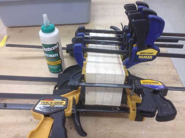 Unir 4 listones de madera. Mayor variedad en cereales, girar piezas al azar en cada cola para arriba. Las abrazaderas rápidas uno dado son agradables, pero que parecen causar piezas diapositiva más que otras pinzas. Si usted está buscando más herramientas para comprar, Bornes sería dulce para este tipo de pegamento para arriba.