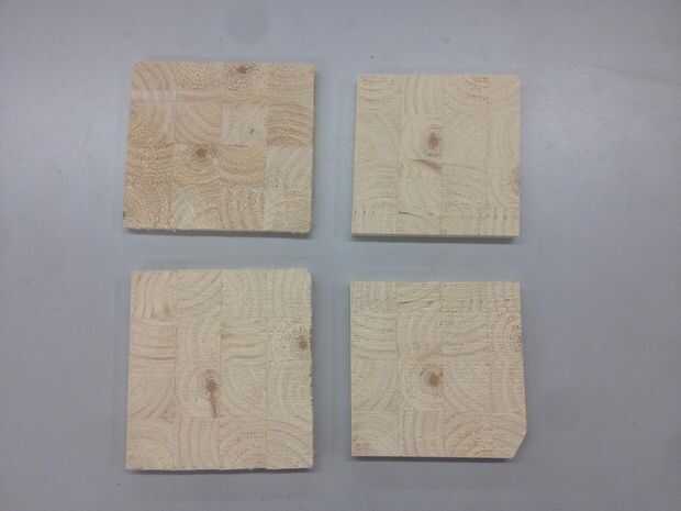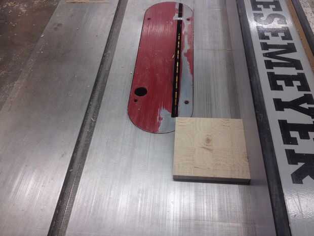 Luego individualmente corté cada montaña rusa a mi deseado 3.5 x 3.5 tamaño en la Sierra de mesa tomando un poco de cada lado. Tenga cuidado con el rasgón hacia fuera en este paso. Piezas que tienen una esquina astillada hacia fuera pueden transformarse ya sea en círculos, o pueden ser limpiados por redondeo de las esquinas con la lijadora.