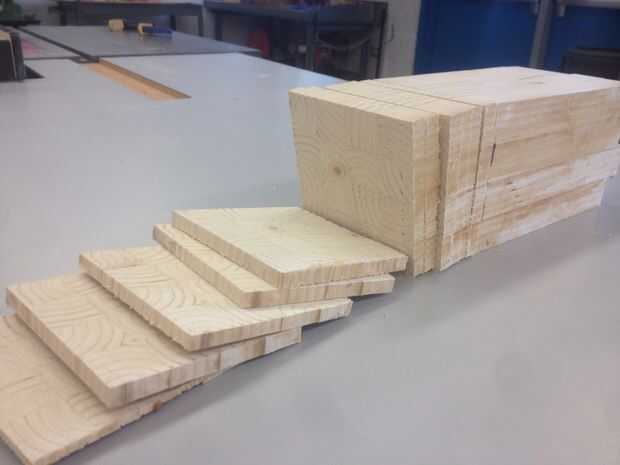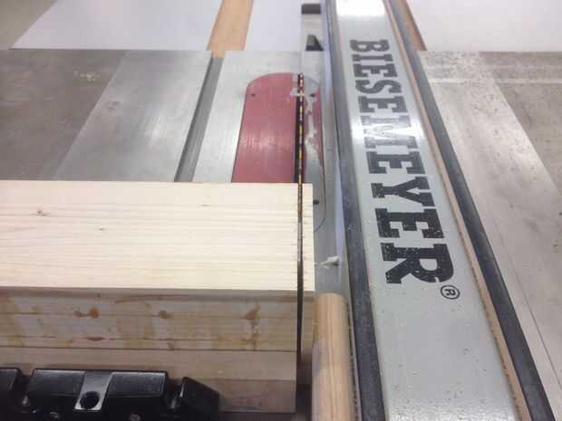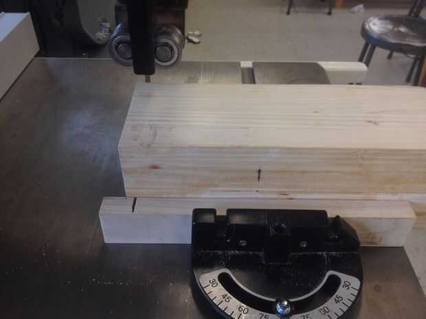 Usé un trineo en la Sierra de cinta para cortar cada rebanada. Usar una parada o marca para que sean todas del mismo grosor. Mi corto 3/8 pulgada de espesor.