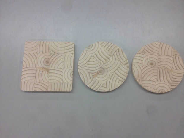 - Como alternativa, podría usar cinta de doble cara para sujetar posavasos a una base de sacrificio y corte varios juntos al mismo tiempo. Esta manera, ninguno tendrá orificios de la plantilla. La primera vez que hice esto, sin embargo, no use suficiente cinta de doble cara y el posavasos desconectadas MDF.