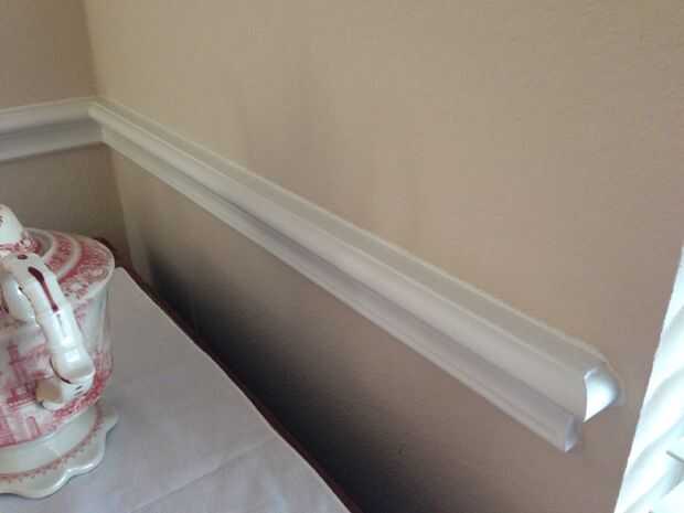 Al medir la longitud de la pared, hacer los cortes finales 1/2 a 1 pulgada de los bordes de los extremos de la pared. Para adentro las esquinas utilizan los ángulos de 45 grados como se muestra en las fotos. Las tapas están en el extremo de los rieles.