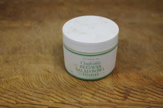 Acabado de cera de abejas es obras para todo madera en la cocina. El acabado protege la madera y le da un suave brillo brillante. Acabado de cera de abejas puede utilizarse para ensaladeras, carnicero bloques, tablas, cucharas de madera, encimeras de cocina y juguetes de los niños.