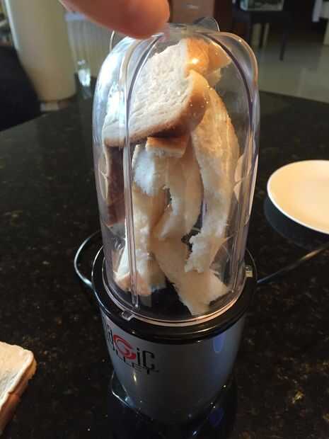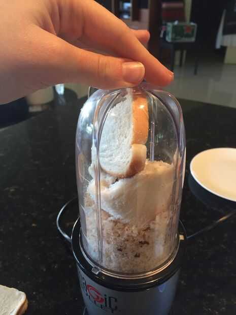 Conseguir 4 rebanadas de pan y colocarlas en un procesador de alimentos y mezcla hasta que salen como migas muy finas