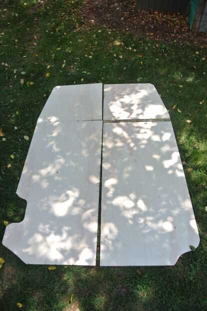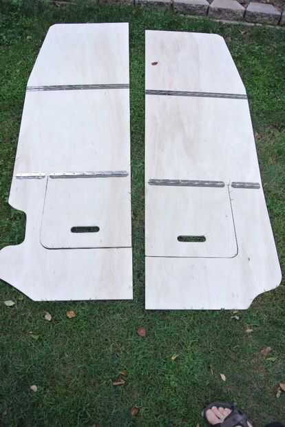 Obviamente, usted no puede conducir con los asientos empujados hasta el frente del coche, por lo que la plataforma necesita doblar hacia la cabina. Usando el cartón, encontré el lugar que podía doblar la madera contrachapada sin golpear la pared o el techo. Para mí, esto fue aproximadamente 1/3 de la parte delantera de la plataforma. Dibujé una línea donde quería la bisagra, y cortar la madera con una sierra de calar. Usar las bisagras continuas es fácil. Alinear las dos piezas juntas, centro de la bisagra sobre los dos trozos y enroscar los tornillos que vienen con las bisagras. También usé estas bisagras para crear una escotilla para acceder al espacio de almacenamiento de información entre los miembros de la cruzados. Dibujé la forma que quería para mi hatch asegurándose de que exista apoyo por debajo de la escotilla (incluida también en cuanto a la restante plataforma). En la bisagra de la tapa, corté la plataforma a través de, por lo que el frente podría también de la bisagra hacia arriba. En mi Honda Fit, esto me permitiría fácilmente montar y desmontar un recipiente grande debajo de la plataforma. Utilicé una sierra de calar para recortar la escotilla y un agujero oblongo para usar como mango. Después de lijar todos los bordes, puse las piezas todos juntas y atornilladas en la bisagra continua en los dos lugares que se muestra en la imagen. Esta todo resultó en mi plataforma se divide en tres secciones plegables conectadas por las bisagras. Me puso la plataforma en la parte superior del marco y asegúrese de que todas las bisagras funcionaba correctamente y la madera fue cortada correctamente.