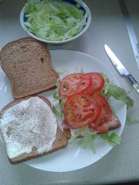 Añadir la lechuga en una cama gruesa, con cuatro rebanadas de tomate microondas... el microondas ablanda lo toms y trae hacia fuera el sabor...