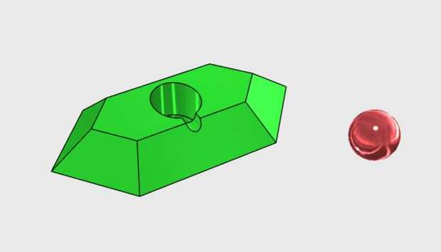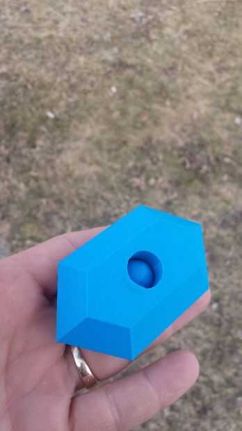 Decido que sería ahuecar el agujero del cilindro de la parte inferior. La cúpula que la parte superior del mismo para la esfera encajaría perfectamente en su lugar. Imprimí un prototipo para ver si el plan podría funcionar. Lo hizo así que fui a diseño de modelo de escala completa. Decidí usar una tira de led es de 4 pulgadas de largo a la luz este proyecto un apoyo la esfera roja en el centro. Poca conversión de pulgadas a cm. Yo en espiral la tira de LED para hacer un círculo. La tira de LED de 4 pulgadas fue la circunferencia de la que me llevó al diámetro que me dijo cuánto hacer mi esfera. La esfera rojo tiene un diámetro de 3,2 cm y la tira del LED tiene grosor de 1cm para una altura combinada de 4,2 cm. Configurar la altura de la joya verde de 4,5 cm. Dejó una cáscara de 1 mm en la parte superior y luego 2 mm espacio de maniobra. Solucionado mi problema de golpeteo.