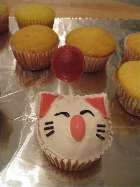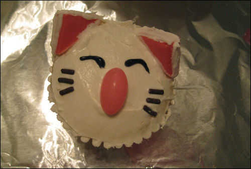 Agregando algunos helar alrededor de los bordes de las orejas y dibujar los ojos con el gel negro.