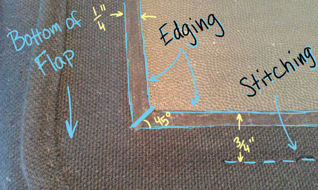 3. use una guía de triángulo de 45 grados para corte los bordes con el ángulo correcto
