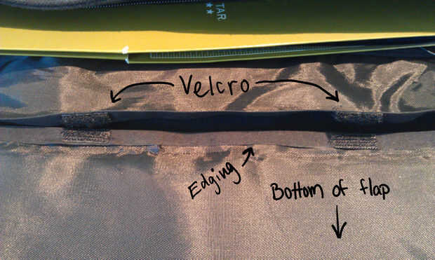 1. voltear la bolsa por lo que se puede llegar a la parte posterior de la aleta