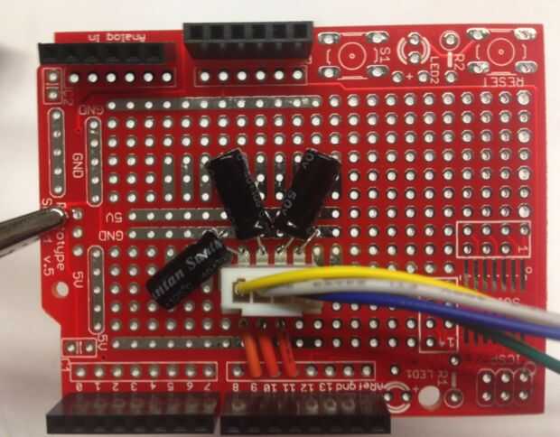 - Cuidado estos condensadores electrolíticos .47uf son polarizados, positivo a la patilla de cable y arduino de límite y negativo a tierra