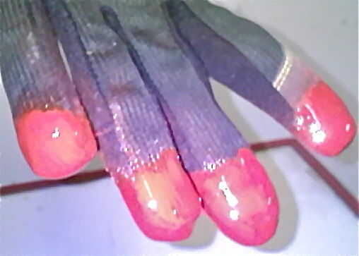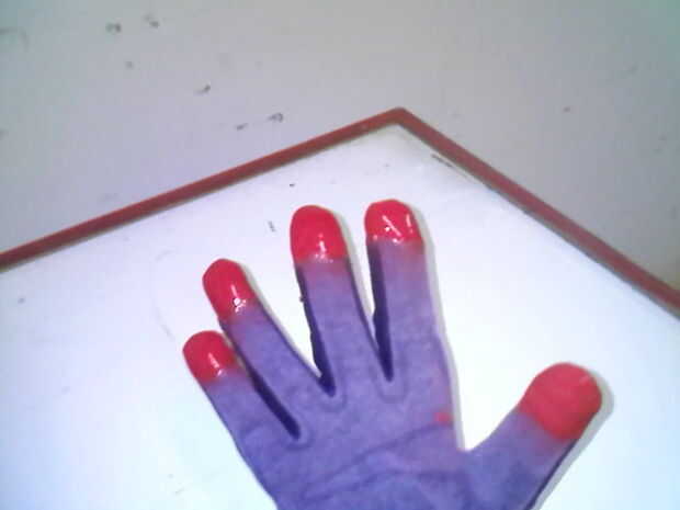 Estoy seguro que usted puede averiguar una manera de llenar los dedos. Encontré con tener los dedos lleno de algo y luego a aplicar con la mano en el guante y luego tirando hacia fuera y dejar secar. Funciona... se hace solo para un trabajo mucho más agradable, haciendo de esta manera.