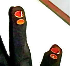 Garantizar así que los dedos están separados en una posición fija mientras se seca. (Esto es mucho más fácil hacerlo antes de tener todos los dedos con húmedo goteo Dip, puede llegar desordenado...)