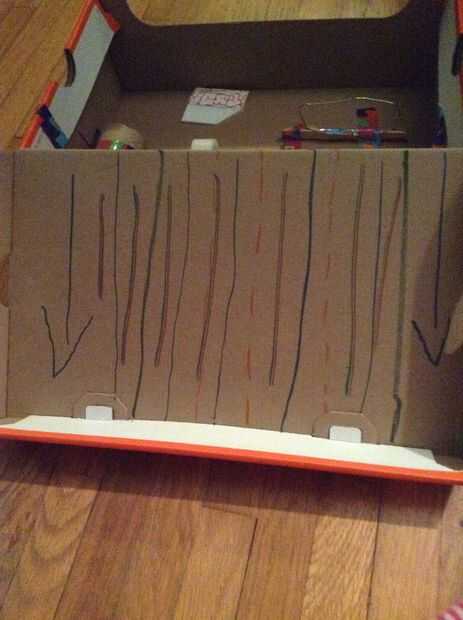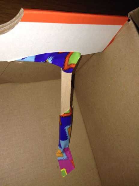 Rampa usé un palito. No poner el palito en cualquier lugar eran haría que la caja no podrá cerrar. Cuando abres la caja, la parte superior de la caja se dobla hacia abajo y también una pequeña rampa. Dibujé las flechas apuntando hacia abajo en la "rampa", por lo que se notaba que era una rampa
