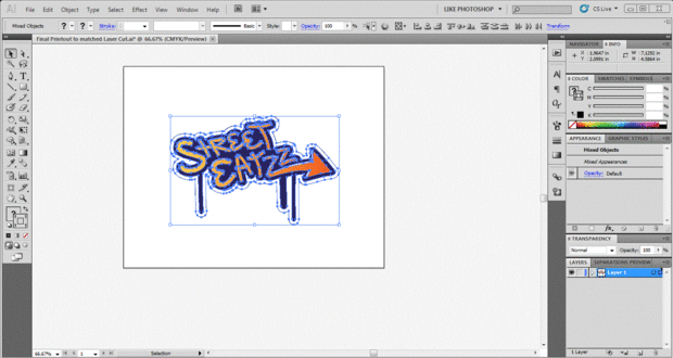 Paso 1: Grupo de la ilustración. Utilice el seleccionar todas herramientas en el software para tomar cada elemento que compone ahora su etiqueta principal – todos los vectores de arte original, además el contorno creado por el comando offset path que será la línea de corte.