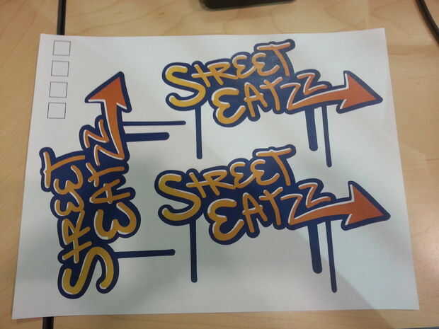 Paso 6: Abra el archivo "etiqueta engomada de la impresión" y quitar el contorno negro que representan la línea de corte para la etiqueta engomada, recuerde, la línea de corte es en beneficio de la cortadora del laser y ahora mismo, corrían a su impresora de papel normal. Mientras que en teoría, podría dejar la línea de corte, como el cortador del laser debe destruirlo cuando ocurre el corte, si la alineación está un poco apagado, te dejó con algunas de la proyección de la línea negra. Asegúrese de que sólo la ruta de corte se resalta y eliminar de golpe. Guardar los cambios al archivo. Ahora debería tener un archivo que tiene su obra de arte original (sin las líneas de corte) y el registro cruza o cajas de demostración. Imprimir una copia en papel normal en la impresora.