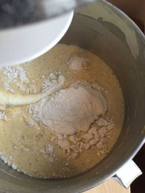 • Añadir la harina restante, 1/2 taza a la vez, hasta que la masa "limpia" el lado del tazón de fuente (ver foto 2).