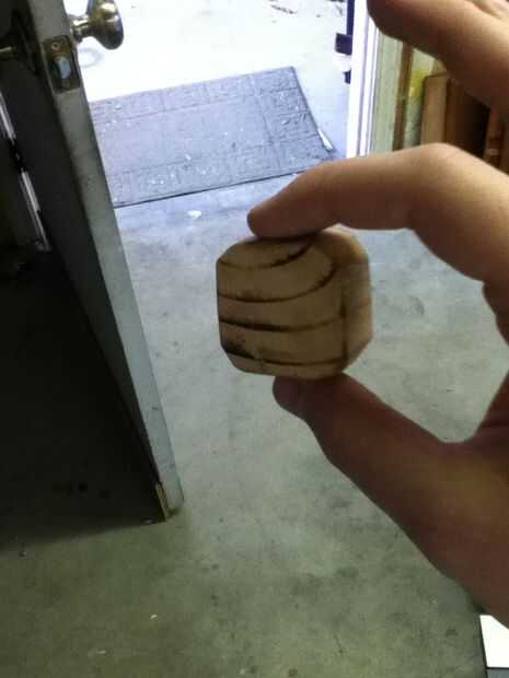 Cortar un bloque y arena hasta que es alrededor de 1,5 "x 1,5" x 0,75"
