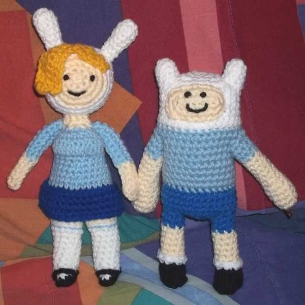 Finn y Fionna se hecho a ganchillo con punto bajo. No tengo un patrón para ellos, pero son formas realmente básicas! Todo se hace en la ronda con la derecha hacia fuera, y han en sus brazos y piernas para que sean capaz de pose.