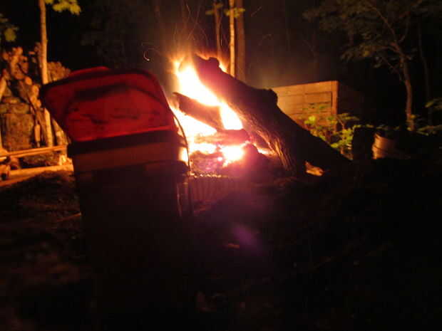 Yo era capaz de quemar verde o demasiado condimentados madera a temperaturas lo suficientemente altas para lograr hervir (esta técnica es común en los arcos de jarabe de arce). Entonces encendí este dispositivo nuevo encontrado un montón de cepillo podrido que debían ser transportadas a la descarga de tocón. Quemó a través de ella unos días disfrutando de una hoguera incandescente, casi sin humo. Funcionado bien para algunas temporadas, pero mientras tanto me atrapó como muchos motores eléctricos que encontré en preparación para cosas más grandes y mejores.