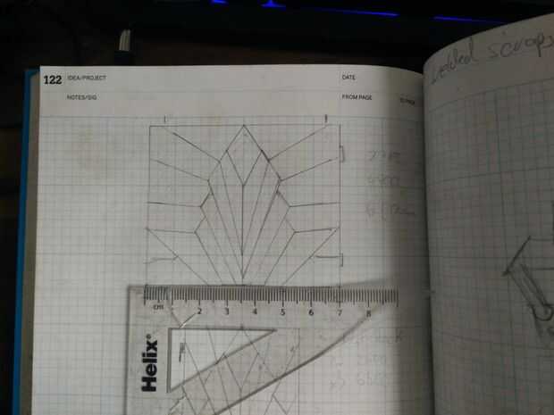 Esto significa que usted no necesita hacer cualquier matemáticas inteligente o averiguar, dibujar el diseño que desee dentro de una caja en el 1:10 escala de su tamaño de fotograma. Luego puede medir cada línea en el dibujo y si es 17mm en el dibujo, necesitan cortar algunos bat redondo para ser 17cm largo en la vida real. En mi diseño repite el mismo diseño 3 veces, esto era más fácil que hacer algo diferente cada vez. También significa que cada vez que configura una herramienta para cortar una longitud que usted necesita, usted puede cortar 3 que ahorra tiempo.