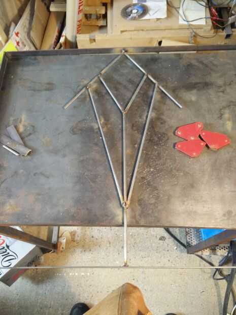 Así que empieza con algunas piezas del patrón central principal. Es útil tener algunos imanes de soldadores para mantener las cosas en el arreglo que desee mientras que soldar los empalmes.