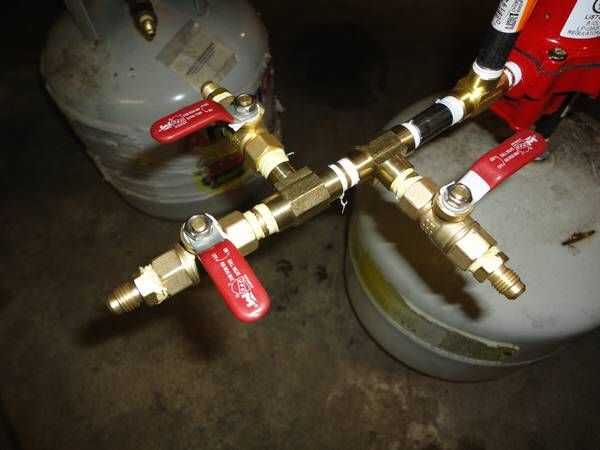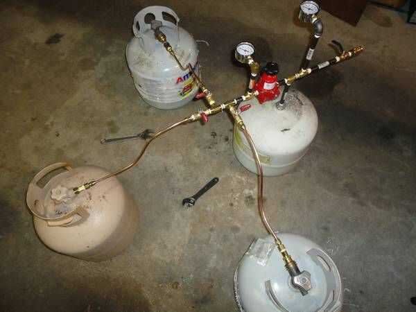 Una pregunta más frecuentes: ¿por qué usaron tres tanques de 20# en lugar de uno grande? La razón de esto es simplemente que es todo lo que tenía en mano - por supuesto, un tanque de solo 100# para el suministro hubiera sido óptimo, pero al tiempo todo lo que tenía en mano eran tres # 20. Utilizando un tanque de solo 100# también reduzca el número de accesorios necesarios para la alimentación, ya que no tiene que ejecutar líneas individuales para cada tanque.