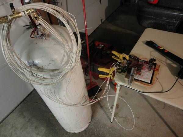 Tendrás las cinco salidas digitales del Arduino (el valor predeterminado es pins 1,2,3,4,5) del alambre a relés que entonces controlará las válvulas de solenoide. Por supuesto, esto requiere el uso de un transistor y un diodo de bloqueo (una búsqueda rápida en Google sobre circuitos de Arduino relé será aclarar esto). Entonces usé seis longitudes de 25 pies de cable solo (yo usé 14AWG, porque eso es lo que yo tenía por ahí, pero los cables sólo tienen que llevar unos pocos amperios en el peor caso, modo 18AWG o 22AWG funciona bien también) para conectar los relés hasta las válvulas de solenoide. Un arnés de cableado de terreno común es fácil de hacer, y todo es alimentado por una batería de 12v de 17Ahr pequeña.