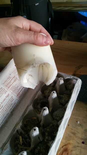 Empecé a recoger la pelusa de la secadora Filtro de pelusa hace un primer intento de firestarter proyecto un par de semanas. Casualmente también han dejado sobre el aserrín de un proyecto que terminé el mes pasado. He encontrado un par de viejos mitad quemado velas mi esposa tenía en una de nuestras cajas de decoración estacional en el garaje. Y finalmente hice unos huevos revueltos para el desayuno que acabó con la caja de cartón.