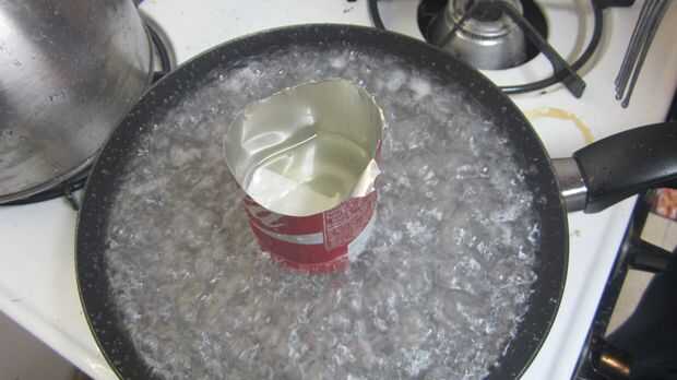 La lata es un gran conductor de calor y se derretirá las virutas de cera fácilmente. Como se puede ver en las fotos, se convierte en líquido.