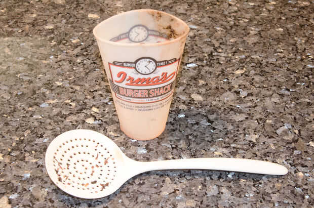 2. una espumadera de cocina. Creo que nuestra fue pensada originalmente para retirar alimentos de una freidora de revolver. Cualquier cosa que se te deje hojear antiguas mechas de vela, errores, etc., funcionará.