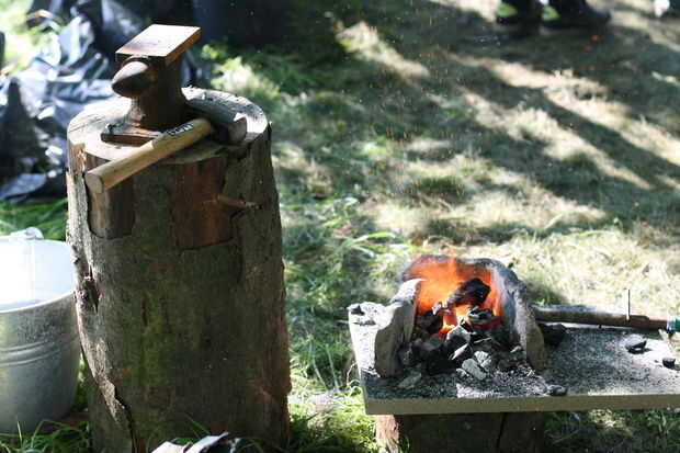 Fragua - necesita algún tipo de heatsource para calentar el acero. Yo uso una reconstrucción de una fragua de viking. Pero usted puede construir una fragua simple de la arcilla. O un quemador de gas.
