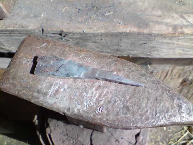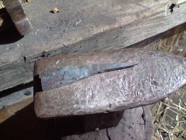 Ahora calentar el acero nuevo y doblar el resto del extremo alrededor del cuerno del yunque.