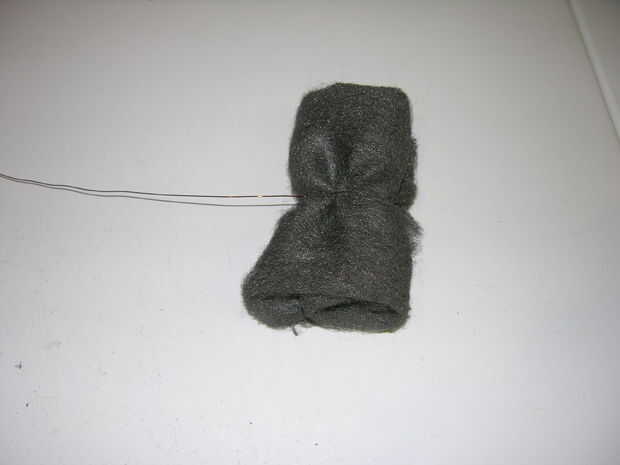 Envolver el alambre alrededor del centro de la lana de acero y atarla en.
