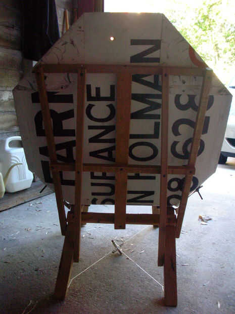 A continuación, cuatro verticales ejecutan de las patas traseras hasta que el riel. Que estén escalonados, horizontal podría ser insertado y empujó hasta firmemente encajado en su lugar, luego atornillar a través. Se puede ver en la cuarta foto que corre delante de dos de las verticales y detrás de los otros dos, que realmente apretaron cosas para arriba. Un carril de centro viene abajo y se fija a un pasado horizontal transversal corriente entre las patas traseras.