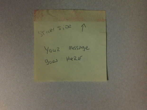 Tome una nota adhesiva estándar y escribe tu mensaje en el lado pegajoso!