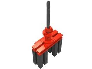 Crear el montaje de la horquilla delantera combinando tres bloque 7.5s con un enlace de 30. Agregar un bloque de 30 en la parte inferior del extremo del bloque de edificio 7.5s. Deslice y centro de un tambor del cabrestante en la parte superior del bloque de edificio 7.5s. Inserte un Clip eje 60 en el tambor del cabrestante. Deslice el Clip 5 sobre el eje justo encima del tambor del cabrestante.