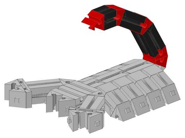 Coloque la cola en el ángulo bloque 60 situado en el extremo del cuerpo de escorpión.