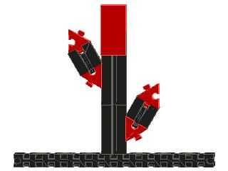 Diapositiva 5 bloque de edificio con dos alfileres por la cara cerca de la pila de bloque de edificio 30. Fijar un bloque de construcción 7.5 en el bloque y luego una placa de montaje 15 x 30 para actuar como el pétalo más bajo.